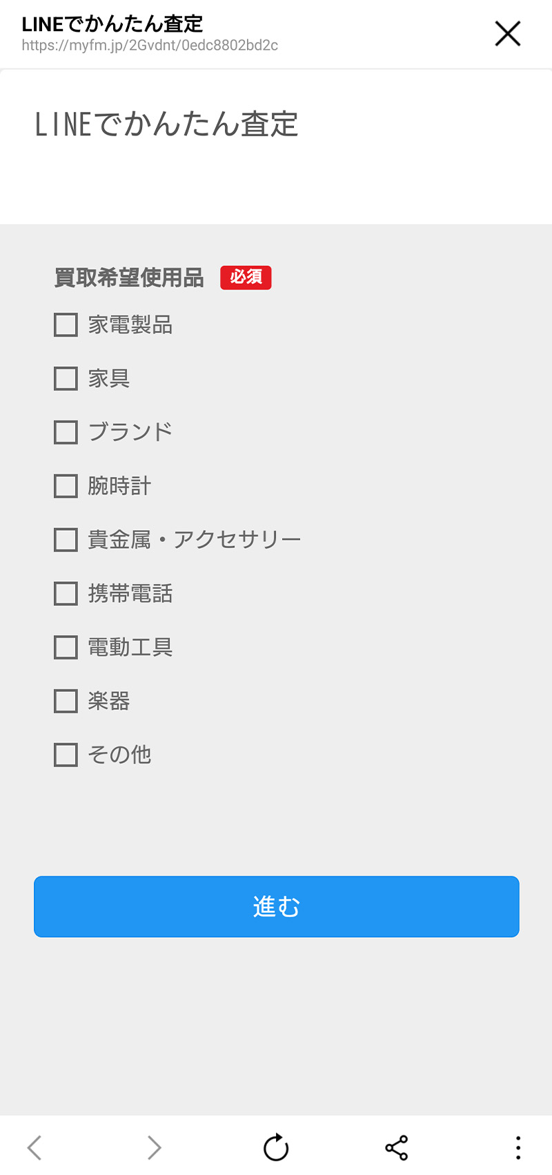- ※LINE査定は簡易的なものです。実物を鑑定した実際の査定金額は、LINE査定金額と異なる場合があります。
